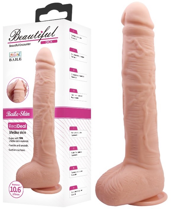Długie, realistyczne dildo z żołędziem i przyssawką.